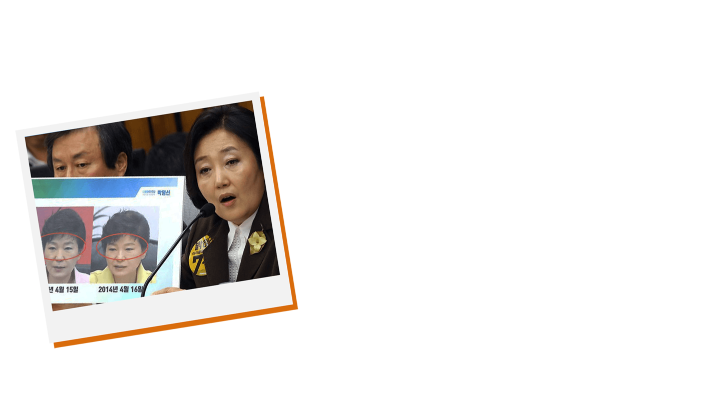 du parti d'opposition compare des photos de Park Geun-Hye prises avant et après le naufrage, lors d'une session