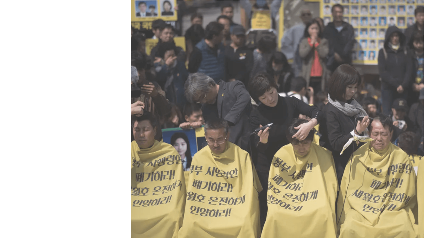 En 2015, une cinquantaine de parents de victimes se font raser le crâne en public en signe de protestation : ils réclament une véritable enquête. “Près d'un an s'est écoulé depuis la tragédie, et la présidente Park Geun-Hye n'a pas tenu sa promesse. Nous allons à Séoul pour avoir des nouvelles”, a déclaré un représentant des familles.